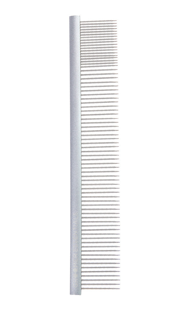 This professional-grade quarter comb delivers precision grooming with its expansive 9.75" width, ideal for finishing and fluffing coats with expert control. The lightweight aluminum construction reduces hand fatigue during extended grooming sessions, while the strategically designed pin layout—featuring fine pins across a quarter section—enables detailed work on delicate areas and texture refinement. A trusted tool for serious groomers seeking reliable performance and durability.